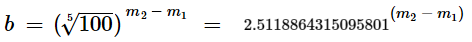 and k = 5th root of dm = (m2) − (m1) = (+2.219) − (-3.159) = +5.378