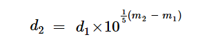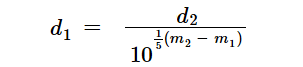 ENTER ONLY THREE KNOWN VALUES and LEAVE THE UNKNOWN VALUE BLANK.  This program will then compute and display the unknown value from the three given known values. The body can be a star, planet, asteroid, etc., - any object to which we apply the stellar magnitude system. The distance can be taken as being in any convenient, units, such as kilometers, miles, AUs, light years, etc., whatever you decide the units represent as long as both d1 and d2 use the same units.